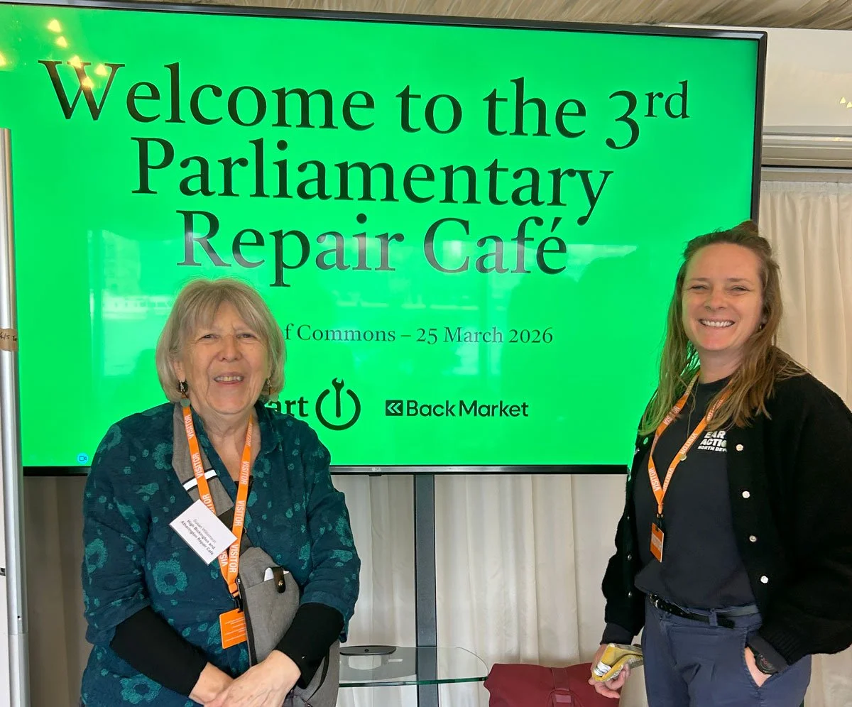 At the end of March, EAND had the privilege of joining representatives from over 100 repair cafes across the UK at a very special event: a repair cafe right in the heart of Parliament, hosted by The Restart Project and Back Market. We were there alongside our brilliant friend and collaborator Sue Williamson from the High Bickington and Atherington Repair Cafe, representing not just our own work but the entire North Devon Repair Cafe Network.